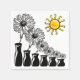 Party blöjor med en bild av svarta och vita blommor som växer mot sol.