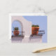 Detta vykortsfoto togs i Positano-Italien längs Amalfis kusten. Den vackra vita metakurin och arkitekturen mot bakgrund av blå himmel ge är ett uppfriskande utseende. Alla som kärlek-arkitektur, Italien och fotografi skulle kunna njuta av detta vykort.