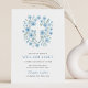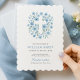 Denna eleganta dopinbjudan med vågig kant har en mjuk blå blomsterkrans i form av ett kors, vackert accentuerad med akvarellblad och detaljer. Designad speciellt för pojkar, kombinerar den klassisk kristen symbolism med en modern minimalistisk layout. Perfekt för religiösa firanden som dop, barnvälsignelse och kristningar, sätter detta tidlösa kort tonen för ett betydelsefullt evenemang. Anpassa texten enkelt med ditt barns namn, församlingsadress och RSVP-information.