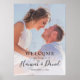 Denna helt underbara välkomstskylt för bröllop har ditt favoritfoto och svart text, inklusive era förnamn i ett livfullt och lekfullt typsnitt. Du kan ändra typsnitt och formulering för att passa din stil. Beroende på färgen på ditt foto kanske du föredrar vit text - kontrollera i så fall vår butik för denna design i vitt!