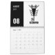 En kalender för kreativ med tolv vediska zodiaktecken i geometriska mönster som inspirerats av deras ursprungliga innebörd, dvs. djur-, fågel-, havs- eller människokärlek, arrangerade i månatlig ordning enligt traditionell Vedic astrology.