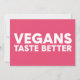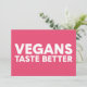 Den här bilden har fet, rosa typografi med texten "VEGANS TASTE BETTER" på en framträdande plats. Utformningen har ett modernt typsnitt som fångar upp öga och som betonar det positiva budskapet om veganism. Det ljusa färg-programmet och den starka texten skapar en engagerande syn som tilltalar dem som uppskattar eller främjar växtbaserade livsstilar. Biet kan som en slogan för ett initiativ för veganskt kampanj, restaurang eller medvetandegörande