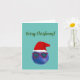 Sött veganskt julkort med blåbär och tomtehatt.