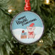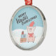 Vegan-jul med tecknad smågris och presenter julgransprydnad metall