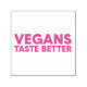 Denna grafik har fet, rosa typografi som framträdande säger ”VEGANER SMakar BÄTTRE”. Designen använder ett modernt, iögonfallande teckensnitt som betonar det positiva budskapet om veganism. Den ljusa färgpaletten och starka texten skapar en engagerande visuell bild som tilltalar dem som uppskattar eller främjar växtbaserade livsstilar. Denna del kan fungera som en slogan för en vegankampanj, restaurang eller initiativ för ökad medvetenhet