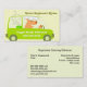 Gullig visitkort för din vegetariska cateringaffär. När du ler grisen i kock hatt kör en grön bil med att ånga mat i baksätet. Ljus - grönt och blek - gult.