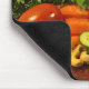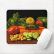Denna mousepad presenterar ett delectable träuppläggningsfat av morötter, tomater, peppar, gurkor och parsley för nya rå grönsaker inklusive. En citron och cashews avslutar valet. Detta stilleben är ett härligt och sunt gourmet- mål såväl som en färgrik konstnärlig sammansättning av rött som är orange, gulnar, görar grön, garvar och bryner.
