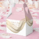 En bild av en gyllene färgad-slöja som skrapas över framsidan och sidorna av den här vita rutan med Rosa överst och handtag. Ta det lugnt och se till att den nylweda personligen namn, med bilden av slöjan på framsidan. Exempelvis namn visas. Anpassa det här objektet om du vill.