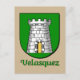 Hispanic-efternamnet Velasquez-familjskölden satte på en stil-bakgrund. Är ditt namn spanskt? Vi kan efterforska ditt namn och ge ett vykort med ditt familjeskydd här på Zazzle! Fråga oss bara. Underbar heraldisk historia för att skicka och visa ditt familjens pride eller för att meddela familjeåterförening.
