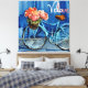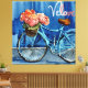 Du kärlek-cyklar. Den vackra vattenfärgen på en cykel och blommor har ord "velo" och "kärlek" som är sammanflätade i ett typsnitt av eleganten.