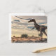 Velociraptor dinosaur observerar att pteranodon flyger i öknen med nipa- och tamarisväxter med solnedgång - 3D-rendering