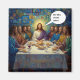 En humoristisk version av den sista måltiden med bröd, vin och Jesus Kristus i mitten, omgiven av lärjungar som undrar ”vem åt kakorna?”