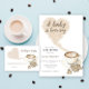Kaffet var en barndusch. Vattenfärgade kaffebönor och kopp av kaffe. Ett hjärta av kaffedoft.