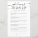 Detta roliga bröllopsfestspel kan anpassas med dina egna vem känner bruden bäst-frågor. Designad av Thisisnotme©