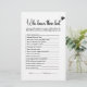 Vem känner dem bäst? Spel | Roligt Möhippa Par Trivia Activity Test dina gästers kunskaper om lycklig-paret med vår som känner dem bäst? Spel | Roligt Möhippa Par Trivia Activity - ett lekfullt och uppriktigt tillägg till bröllop firande. Med modern design, typografi av eleganten och blommigt eller minimalistiska teman som tillval är det här spelet en favorit både på möhippor, möhippor, förlovningsfester och möhippor. Gästerna kommer att besvara roligt och tankeväckande frågor om paret - som "Var träffades de?", "Vem sa "I kärlek you" först?", eller "Vad är deras tillagda dag kväll?" Personen med de mest korrekta svaren vinner, och alla går undan med söta minnen och några överraskningar! Du kan anpassa spelet med parets namn, händelsemedatum och till och med anpassa frågorna så att de återspeglar deras unika kärlek-artikel. Oavsett om evenemanget är romantiskt och blommigt, modernt och minimalistiskt, eller rustiskt och botaniskt, passar den här designen sömlöst in i din décor. Det här spelkortet är utskrivet på ett högkvalitativt kartonger eller tillgängligt som en digital nedladdning och är perfekt för gäst bord, favoritpåsar eller spel station och tillför ett ljusare och älskande spel till firande. 🖤 Klicka på Anpassa nu för att skapa vem som känner dem bäst? Spelet och ta med roligt, skratt och personlig beröring till möhippan. Vem känner till dem bäst, möhippa par trivia, roligt möhippa-aktivitet, bachelorette Party quiz-spel, par trivia möhippa-spel, personlig möhippa-spel, modernt bröllopsfest-spel, blommigt möhippa-spel utskrivbar, som känner till parentesen, elegant förlovningsfest-aktiviteten