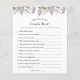 Möhippa-spelkort med vattenfärgsmörjmedel och lila blommor. Ett roligt sätt att interagera med duschgäster.