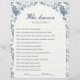 Ta med dig en liten elegans till din möhippa med vårt vackert designade spelkort "Vem känner till brickan Best?" - perfektens isbrytare för något blått innan jag gör firande. Det här spelet är inspirerat av ömtåliga blommigtar och mjuka blått, och är inte bara en roligt - det är ett fantastiskt tillskott till möhippans matbord som lätt blandas ihop med romantiskt, trädgårdsindikerat bedrägeri. Det här spelkortet känns rakt från en hemlig trädgård. Den matchar perfekt med alla blåvita och vita möhippor, särskilt de som tar till sig vintagens elegans, teets party charm eller mjuka källpasteller. Feminin-konstruktionen framkallar nåd och stollig, skapar det som en keepisévärd biet för gäster och bruden som vill vara lika. Spelet självt är inbjudan gäster som ska svara på fånig- och sötfrågor om bruden - från hennes favoritkaffeorder och barndomsssnickare till hur hon träffade sin fästman och hur hennes drömshonungsmåne ser ut. Det ger upphov till skratt, historier och vänskaplig tävling medan man firar den person som alla kom för att duscha med kärlek. Oavsett om du planerar en intim brunch eller en fullt-on-blommigt-fête, sammanför den här matchen gästerna på bästa möjliga sätt. Koppla ihop detta med matchande skylt, menykort eller tack-märkre för att skapa en sammanhängande och intressanta möhippa som känns rak ur en saga. Perfekt för vår och sommararrangemang. Den här utskriften tillför både skönhet och roligt till din stora dag.