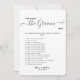 Vem känner till den bästa Groom-inbjudan | Elegant bröllop Shower Game Card Firar triumman i stil med vår som känner till bästa Groom-inbjudan | Elegant bröllop Shower Game Card - ett sätt att samla gäster före den stora roligten. Med tidslösa kalligrafingaccenter, ren modern typografi och en svartvit minimalistisk design, inbjuder den här dubblan till ett interaktivt spelkort som är perfekten för alla före bröllop firande. Idealisk för groomduschar, reklampartier, möhippor eller förlovningsfester, detta spelkort inbjudan gäster för att se vem som bäst vet vem verkligen är - från mat och hobbieser till superskojets fakta och personliga frågor. Det är ett underbart sätt att skratta, skapa minnen och koppla ihop vänner och familj. Anpassa kortet med namn, händelsemedatum, plats och skräddarsy frågorna för personlig och minnesvärd beröring. Oavsett om evenemanget är avslappnad och roligt eller elegant och förfinat passar den här utformningen utan problem in i alla möhippans teman. Den här kombinationen av inbjudan + spel är ett unikt tillägg till ditt evenemang. Den är utskriven på en kartong av högsta kvalitet och finns i många-format. Använda det som isbrytare, gruppverksamhet eller del av ett rumsinriktat firande. 🖤 Klicka på Anpassa nu om du vill skapa din Vem känner till bästa Groom-inbjudan och sparka av firande med skratt och kärlek. Vem känner till trivialinbjudan, trivialkort för triumma-groom-grumling, elegant bröllop-trivia-tråd, svart-vitt trivialkort, modern groom möhippa inbjudan, utskrivbar som känner honom kort, trivialinbjudan, personlig-triomspel, groomdusch. inbjudan till spelkort