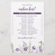 Lila Blommigt Personlig Möhippa Game Lakan: Skulle hon hellre? Vem vet bruden bäst? Spela det här spelet med dina möhippa gäster och ta reda på vem som bäst känner henne? Du kan redigera alla frågor om det här för att anpassa det till bruden! Du kan till och med ändra det så att det blir ett pars duschspel genom att byta "hon" till "de". Få dina gäster att svara rätt...gästen med de rätta vinnarna! Den här designen har lila och lavender-vilda blommor med grönt. Klicka på "Anpassa ytterligare" om du vill redigera ytterligare.