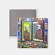 A.I. Assisterad utskrift av en person som är försedd med ett färgstarkt mönster tittar i hans reflektion i spegel på ett geometriskt vibrerande golv, men ser verkligen sin egen sak av vad bilder själv är?