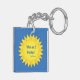 Denna ultrahållbara akryliska nyckelkedja innehåller ett citat från påve Francis i en gult sol med blå bakgrund. Färg är en del av Pontiffs Jacka av Arm. Texten lyder: Vem skall jag bedöma? Det är ett exempel på denna mycket speciella mans storhet och ödmjukhet.