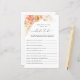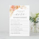 Ha en vacker och rolig bröllopsfest med våra koordinerande bröllopsspel! Spelkorten "Hur väl känner du bruden" med utsökt akvarellblommig detalj i en vacker kombination av persika-, kräm-, champagne- och rosafärgade nyanser och moderna handskrivna kalligrafidetaljer. Möjlighet att ändra frågorna med hjälp av textrutorna i mallen. Flygblad stil papper kvalitet. Ett ark motsvarar ett spelkort. Design som matchar våra persika- och krämfärgade blommiga bröllopsinbjudningar. Fler matchande spel finns också tillgängliga.