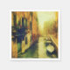 Bask i den romantiska höstglöden i Venedig, Italien med en vacker italiensk målning som är tryckt i jordens rostiga orange, guldfärgad gult och oliv grönt. En tyst kanal med förtöjda båtar och gammal byggnad efter en venetisk balkong med röda blommor som fortfarande är i blomning. ♡ Idyllfire