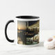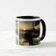 Vit och svart 11 oz. ringkamera mugg med en bild på båda sidor av en kompilering av bilder av romantiskt Venedig nattetid.