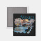 En souvenir-bild av en bro, båtar och färglöst byggnad som omger en kanal i Venedig, Italien. Den här souvenir-konstruktionen är en del av min Destination-serie. Denna kylmagnet är fullt anpassade.