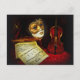 Vintage och romantiskt stillliv; antika violin, manuscript Music lakan på röd sammet och en gyllene venetiansk mask. Grunge struktur och grunge-effekter tillagda.