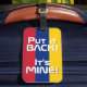 Venezuelas nationella Flagga Funny Patriotic Luggage Tag med Venezuelas nationella färg som täcker märkrns framsida. Lustigt text "Sätt tillbaka den!" Det är MINE" är skrivet över flagga färg. Anpassadet Text är fullt ut med funktionen "Anpassa den!". Andra sidan av märkrn är reserverad för din information. Den här roligten är Venezuela Luggage Tag-numret perfektens följeslagare till din resväska och den vackra gåvan till vilken tillfälle som helst. © LänderAvVärlden