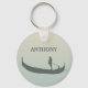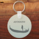 Skapa en personlig med en venetiansk stil. Den här nyckelkedjan har en silhuette stil-illustration av en gondolier och en gondola i grått som ställs in mot en solnedgång färgad med ljusguld gult och ljusblå . Grått-bokstäver är redo för personlig med namn eller annan text.