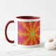 Den här färgaden kaffe mugg har en grå bild som påminner om en åskstorm på Venus. Den har en ljusstark orange med gult linjer som kommer ut från mitten och ser ut som brinnande blixtbultar. I mitten av varje blixt finns en blå linje som påminde mig om en ven som ledde till titeln Venous Thunderstorm. Utformningen visas här på en röd och vit ring stil mugg, men finns även på andra färg och stilar i mugg.