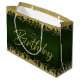 siempre hay un toque final para nuestros regalos para el cumples como está bolsa con flores doradas y fondo verde degradado lindo