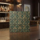 This striking ceramic tile features an intricate, faux high-relief geometric pattern defined by sharp-edged starbursts and diamond frameworks, centered with decorative, stylized spiral motifs. The pattern boasts exceptional dimensionality and texture. It is rendered in a luxurious, aged bronze finish beautifully accented by a deep verdigris (blue-green) patina, evoking the look of preserved ancient or architectural copper. This dramatic, elegant tile is perfect for creating a sophisticated, high-end Art Deco or Gothic Revival statement, ideally suited for luxury bars, feature fireplaces, and grand accent walls. Search ID1227 to see other metallic geometric designs in this series. Note: design adapted from generative content.