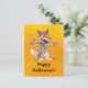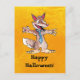 En tecknad varulv med ett stort, vasst tandat flint, läskigt humant händer och fötter och en tatuerad blå slips på ett Halloween-vykort som ska skickas till dina vänner!