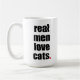 För manarkärlek för svart "verkliga katt bokstäver på en vitmugg med en ljus röd period på avsluta. Underbar för kattälskare i ditt liv!