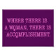 I den rosa texten står det: "Där det finns en kvinna finns det en prestation." O:n i citatet är faktiskt tecknet för Female.