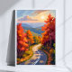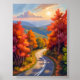 Vermont Fall Foliage Autumn Winding Road Watercolor Landscape Painting Poster