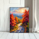 Vermont höstlöv Höst Slingrande Väg Vattenfärg Landskapsmålning Poster