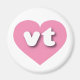 Den här magneten har ett lugn, coola rosa hjärta som innehåller det feta, vita, rundade nedre fodral-brev vt, en lekfull förkortning för tillståndet Vermont, det grönt bergslandet.