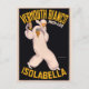 Unik återställd reklam poster för vermouth som visar en kvinna i en vit kronad kostym med druvor och flaska i det berikade vin.