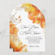 Meddela din speciella dag med den vackra Verona Sunset Watercolor Blommigt Arch Wedding-inbjudan. Den har ömtåliga vattenfärgblommor i varm orange, gult och persikofärgade toner, liksom bra linjer av faux guld, inspirerad av det bedövande färgen av ett solnedgång. Den moderna bågformen ger en unik beröring, medan elegantens typografi presenter ger dina bröllop-detaljer. Anpassa enkelt med egen information.