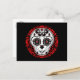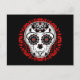 Min version av en söt toppen sockerskalle i vitt, rött och svart med många eleganter på en koordinerande bakgrund. Här på ett vykort.