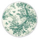 Toile de jouy mönster in verdigris grönt on creme bakgrund. Fåglar och fjärilar frossa i grenar i blommar träd. Klassisk toile mönster..
