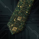 This unique and eye-catching necktie features a sleek circuit board design with intricate golden pathways, chips, and components arranged in a vertical layout on a rich dark green background. The detailed tech pattern has a modern, intelligent, and slightly geek-chic vibe that stands out while remaining sophisticated. Perfect for engineers, programmers, tech professionals, STEM weddings, or anyone who wants to show their love for technology in a stylish way. The deep green with metallic gold details pairs beautifully with black, navy, gray, or white suits. Whether you're heading to a conference, attending a tech-themed wedding, or simply want a smart conversation starter, this circuit board tie brings personality, confidence, and modern flair.