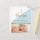 Anpassa med din baby pojkes foto och fullständiga namn. Det tryckta guldfärgade "dop"-manuset och korset ger en touch av elegans till denna moderna design. Blått kan ändras med hjälp av verktyget för ytterligare anpassning om det behövs, kontakta oss på info@lddesignloft.com om du behöver hjälp med denna design. Besök oss på lddesignloft.com och håll kontakten.