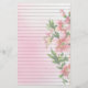 Nätt vertikal grupp av rosablommor och grönska mot en mjuk rosa vattenfärgbakgrund. Linjer för lätt handstil