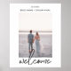Säg välkommen till dina bröllopsgäster! Personlig enkel handskriven script vertikal välkomstskylt för bröllop med anpassningsbar bild, parnamn, bröllopsdatum, med lekfull och fräsch kalligrafi. Minimalistisk, grundläggande och modern design för dina vertikala parbilder.