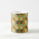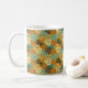 Mugg har en modernt design i mitten av århundradet av ett rekordkort som överlappar varandra överallt i solvit, benvit, brun, orange, turkos, blått och grönt.